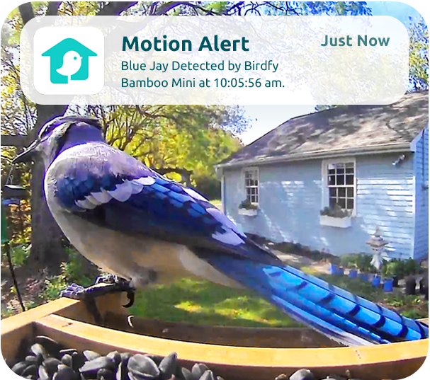 Coo-coo! A bird guest is here for the buffet - a real-time vistor notification will bring you a smile.