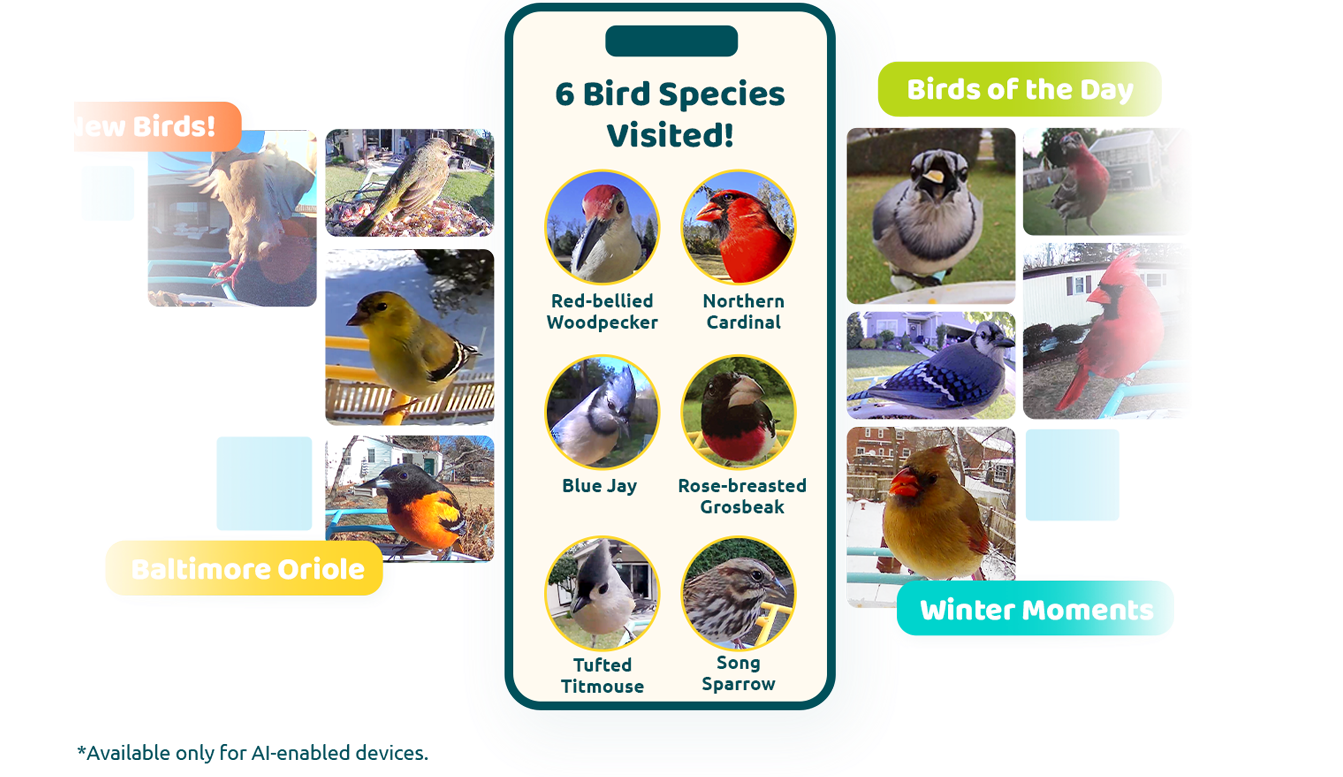 AI Bird Recognition– Identifies bird species and generates daily feeder highlights.